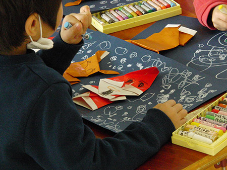 お部屋では絵の具やハサミなどを使って季節の制作をします。