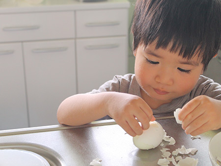 エプロン姿のママを思い浮かべながら、カレー作りに挑戦。おいしくできるかな?
